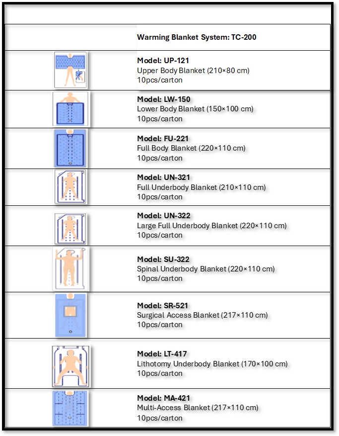 שמיכות חימום לחדרי ניתוח: שמירה על טמפרטורת גוף אופטימלית במהלך ניתוחים היא קריטית לבטיחות החולה ולהתאוששות מהירה. שמיכות החימום המתקדמות מותאמות למגוון מכשירי חימום הקיימים בתי חולים ומבטיחות סביבה מבוקרת ויציבה, מפחיתות סיבוכים ומסייעות להליך כירורגי בטוח.